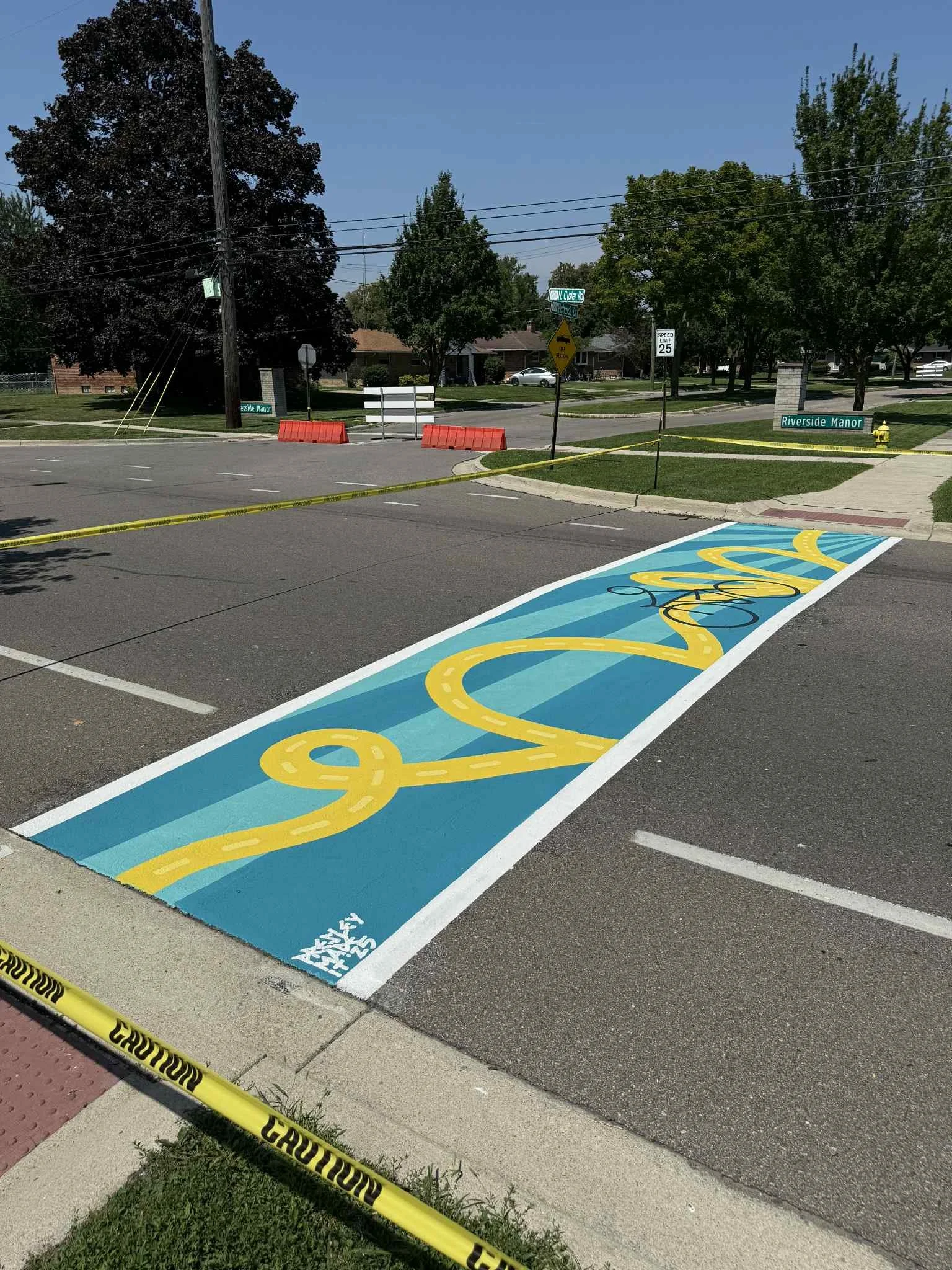 In 2025, I took on the largest project of my career. Working alongside my local government officials with the help of a grant from the Michigan Fitness Foundation, I painted seven crosswalks in Monroe, MI.
